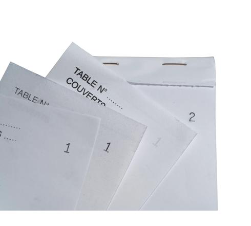BLOC MAÎTRE D'HÔTEL 50 FEUILLETS AUTOCOPIANTS NUMÉROTÉS EN TRIPLI - FORMAT 9,5X17 CM - BLANC