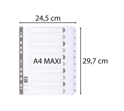INTERCALAIRES IMPRIMÉS À TOUCHES PLASTIFIÉES - 10 TOUCHES 1 À 10 - A4 MAXI - BLANC
