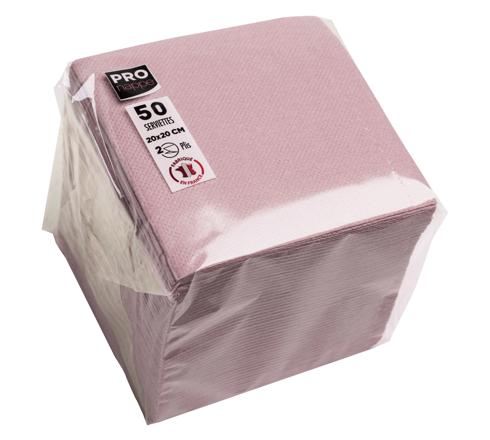 PAQUET DE 50 SERVIETTES COCKTAIL MICRO-GAUFRÉES OUATE 2 PLIS - 20X20 CM - VIEUX ROSE