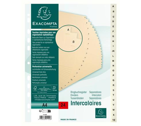 INTERCALAIRES IMPRIMÉS CARTE PEAU 155G 24 POSITIONS DE A À Z - A4 - IVOIRE
