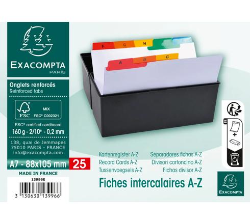 INTERCALARI PER SCHEDARIO, 25 SCOMPARTI ALFABETICI A-Z CARTONCINO 160 G/MQ - A7 IN ORIZZONTALE - BIANCO