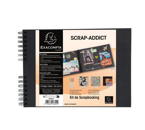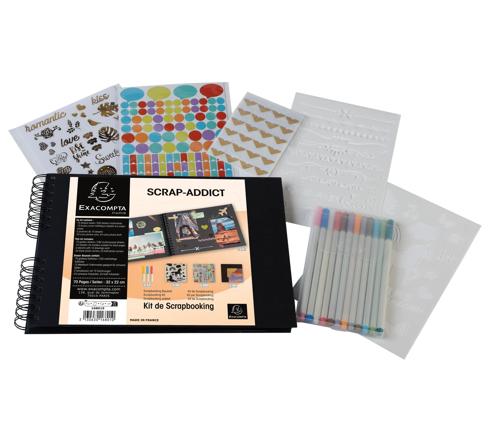 Scoprite il nostro kit completo per scrapbooking ScrapAddict con un album a spirale nero di alta qualità e tutto il materiale necessario per valorizzare i vostri ricordi ed esprimere la vostra creatività.