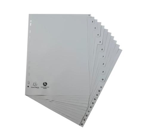 INTERCALAIRES IMPRIMÉS NUMÉRIQUES PP GRIS RECYCLÉ 20 POSITIONS - A4 - GRIS