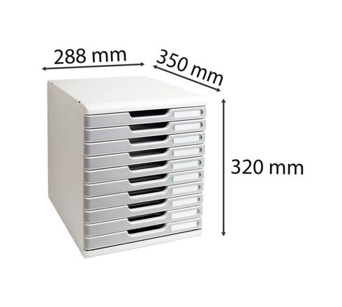 Cassettiera composta da 10 cassetti alti 2,6 cm per archiviare documenti (A4, A4+ o 24x32 cm).