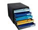 Cassettiera a 5 cassetti per documenti (A4, A4+ o 24x32 cm). 4 piccoli incastri sulla parte superiore della cassettiera consentono di impilare diverse cassettiere per creare una colonna di cassettiere.