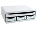 Cassettiera composta da 4 cassetti tra 1 grande che consente l'inserimento diretto dei documenti (A4, A4+ o 24x32 cm) nel cassetto s enza doverlo aprire e 3 cassetti piccoli per riporre oggestica.