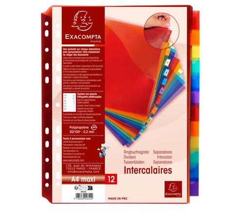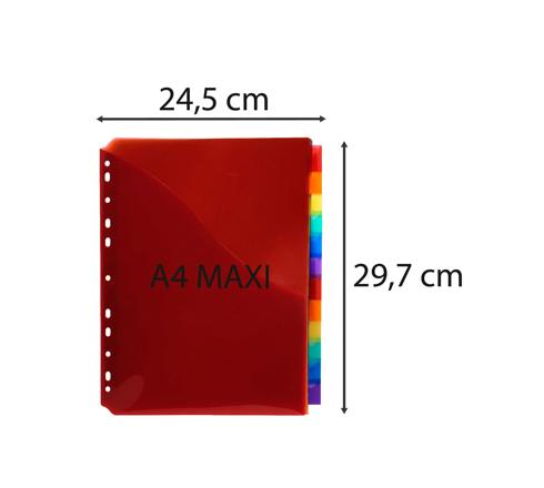 DIVISORI NEUTRI 12 TASTI CON PORTAETICHETTA E TASCA POLIPROPILENE 200 MICRON - A4 MAXI - COLORI ASSORTITI