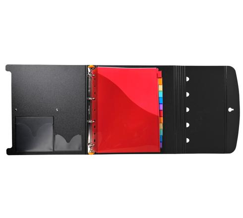 Polipropilene trascludico 200 micron. Ogni divisorio dispone di una busta a L che consente di archiviare foglio A4.
