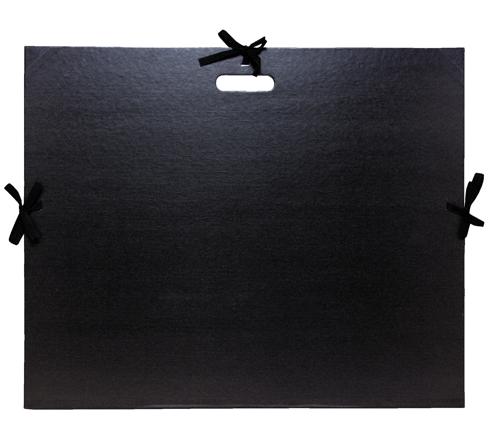 CARTON À DESSIN KRAFT NOIR VERNIS AVEC RUBANS ET POIGNÉE 59X72 CM - POUR FORMAT RAISIN - NOIR