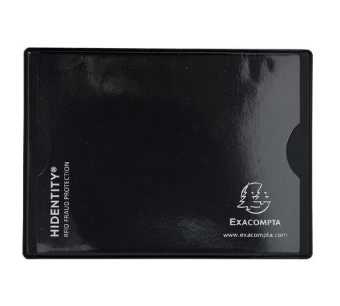 Exacompta Hidentity Duo Credit/Debit Card Protective Case The Exacompta Protective Case is used to protect yourself again fraudulent reading. 85x60mm in size and suitable to hold Credit Cards. The case has 2 faces so it can hold 2 cards at the same time The case has 2 faces, 1 on either side which are back to back. The case is used to protect your RFID data against fraudulent reading
