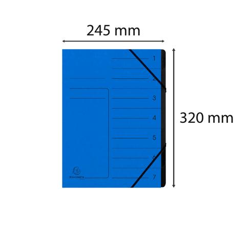 TRIEUR AGRAFÉ AVEC ÉLASTIQUES INTÉRIEUR NOIR 7 COMPARTIMENTS - A4 - BLEU