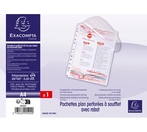 SCATOLA DA 50 BUSTE FORATE A SOFFIETTO CON PATELLA POLIPROPILENE LISCIO 200 MICRON - A4 - INCOLORE