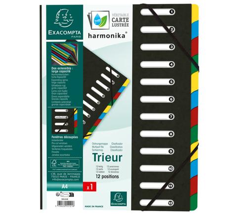 CARTELLA HARMONIKA CON ELASTICI E DIVISORI, DORSO ESTENSIBILE, FINESTRE RITAGLIATE, 12 SCOMPARTI - A4 - NERO