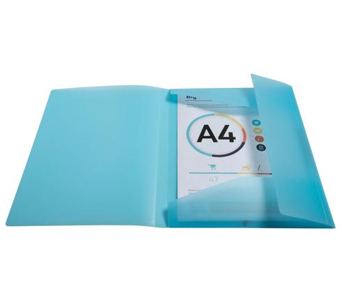 Polipropilene traslucido con tasca A4 sul fronte che consente di personalizzare il contenuto in un colpo d'occhio.