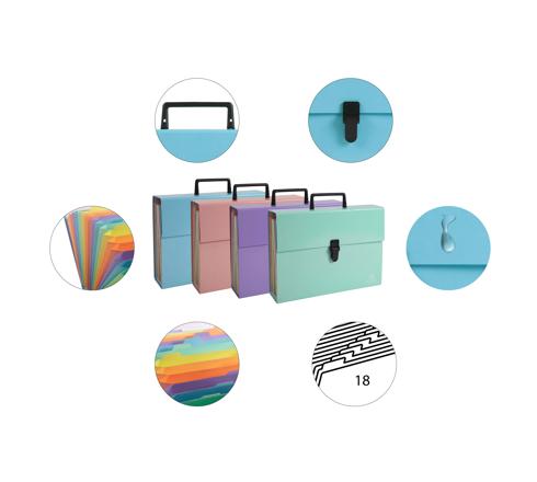 CARTELLA A SOFFIETTI ESPANDIBILI CON MANICO AQUAREL 18 SCOMPARTI - 24X32CM - COLORI ASSORTITI