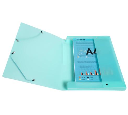 La chiusura con elastici angolari consente di tenere al sicuro fogli e documenti durante il trasporto.
