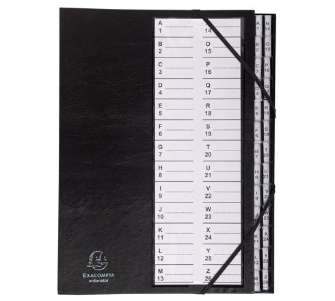 ORDONATOR 26 SCOMPARTI ALFANUMERICO, COPERTINA RIGIDA, ELASTICI DI CHIUSURA, CAVALIERINI - NERO