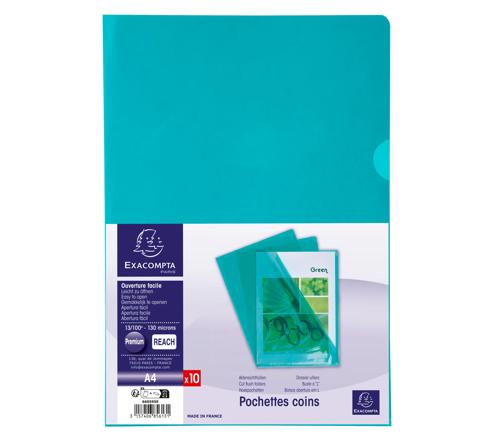 SACHET DE 10 POCHETTES COIN PVC LISSE HAUTE RÉSISTANCE 13/100E - A4 - VERT