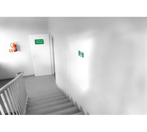 CARTELLO ADESIVO 20X20CM USCITA DI EMERGENZA FRECIA SINISTRA - VERDE