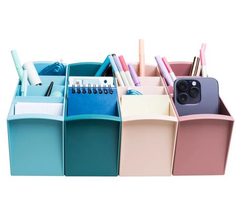 4 scomparti di profondità variabile da 8 a 11 cm, può essere utilizzata come portamatite o per riporre forbici, pennarello, posta, telefono o altri piccoli accessori.