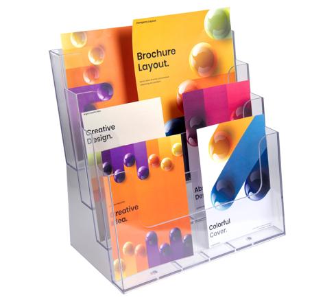 PORTA BROCHURE/CATALOGHI DA BANCO MULTI-FORMATI - CRISTALLO