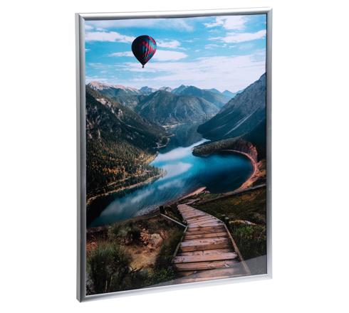Cornici da parete con bordi in alluminio, appendibili sia in verticale sia in orizzontale.