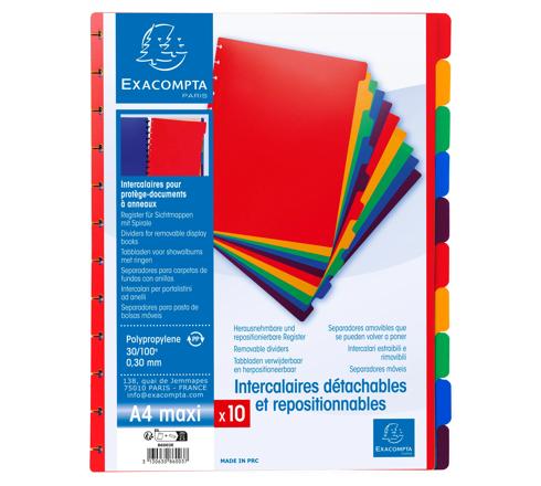 INTERCALARI POLIPROPILENE PER PORTALISTINI A BUSTE RIMOVIBILI - 10 TASTI A4 - COLORI ASSORTITI