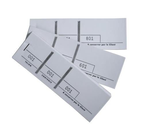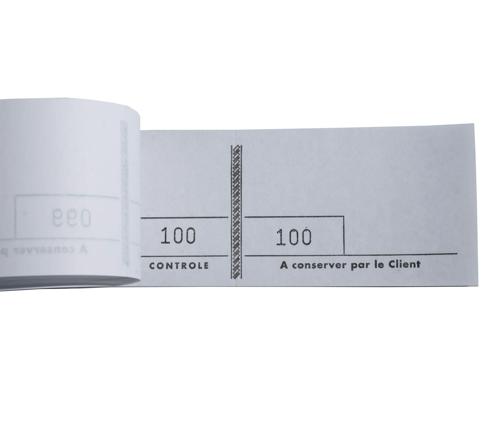 Chaque feuillet est composé de 3 coupons dont deux détachables grâce aux microperforations : souche, contrôle et client.
