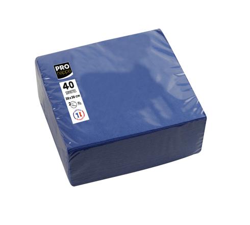 CONF. 40 TOVAGLIOLI MONOUSO IN OVATTA DI CELLULOSA MICRO-GOFFRATA A 2 VELI, 38X38CM - BLU MARINO
