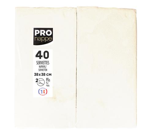 PAQUET DE 40 SERVIETTES MICRO GAUFRÉES OUATE 2 PLIS - PLIÉES 1/8 - FICELLE - NOUVEAUTÉ