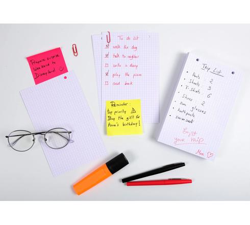 Le type de fiches (quadrillées, unies, perforées, imprimées, couleurs assorties...) peut être facilement identifié grâce à la couleur du packaging.