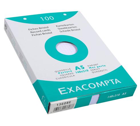 ETUI 100 STEEKKAARTEN BRISTOL GERUIT 5X5 GEPERFOREERD 148X210MM - WIT
