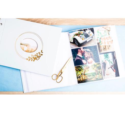 Deze Ringflower albums in lichte tinten met elliptisch bloemenmotief in goudopdruk passen bij iedere bruiloft, ongeacht je nu kiest voor een landelijke, bloemrijke of klassieke invulling.