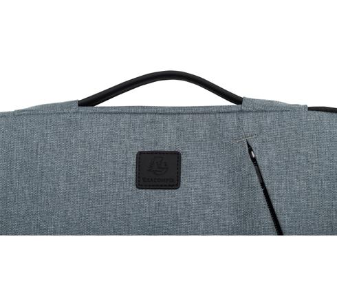Voorzien van een klein voorvak en een ritssluiting. De rits opent slechts aan 2 zijden om te vermijden dat de laptop uit de hoes valt als deze te snel wordt geopend.