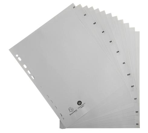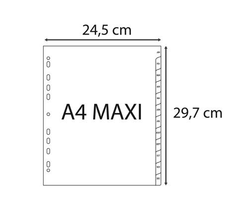 TABBLADEN MET BEDRUKTE TABS IN GERECYCLED PP - 12 TABS - JANUARI/DECEMBER - A4 MAXI - GRIJS