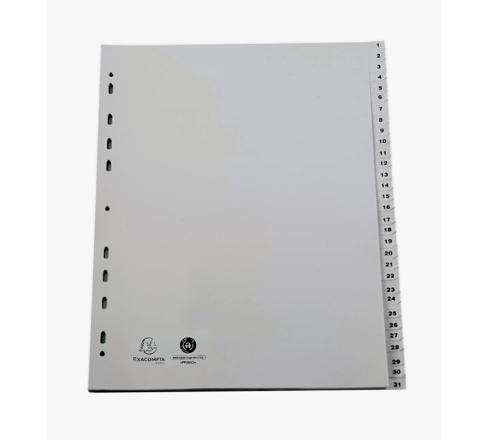 TABBLADEN MET BEDRUKTE TABS IN GERECYCLED PP - 31 TABS - 1 TOT 31 - A4 MAXI - GRIJS