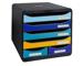 De ladenblok Big Box Maxi Bee Blue heeft 6 laden, 4 grote en 2 kleine, voor het opbergen van documenten A4 en A4+, elastomappen 24x32cm en groot formaat enveloppen, maar ook voor kleine bureau accessoires zoals notitieblaadjes, papierclips, koffiecups, enz. Deze ladenblok is geschikt voor gebruik op kantoor, thuis of op school.