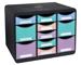 De ladenblok Store-Box Multi Aquarel met 11 laden is veelzijdig inzetbaar en geschikt voor het opbergen van al uw bureau accessoires. De 7 kleine laden zijn geschikt voor het opbergen van notitieblaadjes, kaarten, pennen, papierklemmen, koffiepads . en de 4 hoge laden zijn geschikt om grotere accessoires in op te bergen zoals een schaar, adapter, batterij, hechtapparaat, stempel ... Deze ladenblok is geschikt voor gebruik op kantoor, thuis of op school.