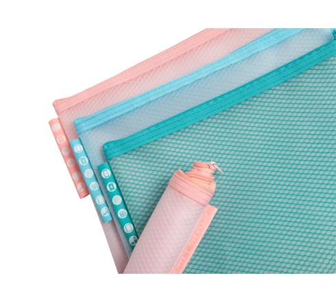 Dit etui in doorzichtige pastelkleuren is geschikt om allerlei benodigdheden, papieren, accessoires, pennen, cosmeticaproducten, enz. in op te bergen. Dankzij dit etui is de inhoud goed beschermd en zichtbaar.