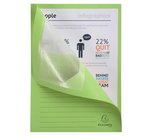 Dankzij het venster zie je onmiddellijk de inhoud van het dossier.De gedrukte lijnen op de omslag zijn beschrijfbaar en vereenvoudigen de identificatie van het dossier