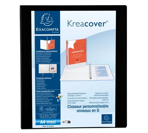 CLASSEUR PP PERSONNALISABLE KREACOVER - 4 ANNEAUX EN D 30MM - A4 MAXI - NOIR