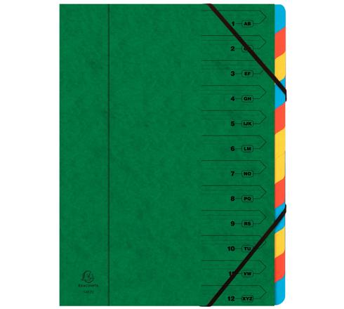 SORTEERMAP MET VASTE RUG EN ELASTOSLUITING - 12 INDELINGEN - GROEN