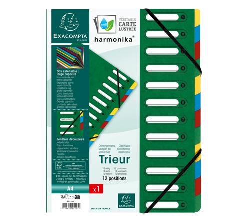 SORTEERMAP HARMONIKA® MET UITREKBARE RUG EN UITGESNEDEN VENSTERS - 12 INDELINGEN - GROEN