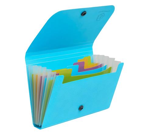 POCKET SORTEERMAP MET 6 VAKKEN IN GERECYCLED PP POP'N CO - CYAAN