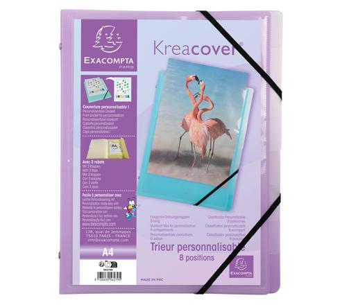 VOORORDNER MET 3 KLEPPEN POLYPROPYLEEN KREACOVER PASTEL - 8 VAKKEN - A4 - GEASSORTEERD