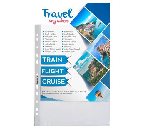 Pak van 100 gladde en kleurloze geperforeerde showtassen van premium kwaliteit - Opening aan de bovenkant voor eenvoudig toevoegen en verwijderen van documenten.