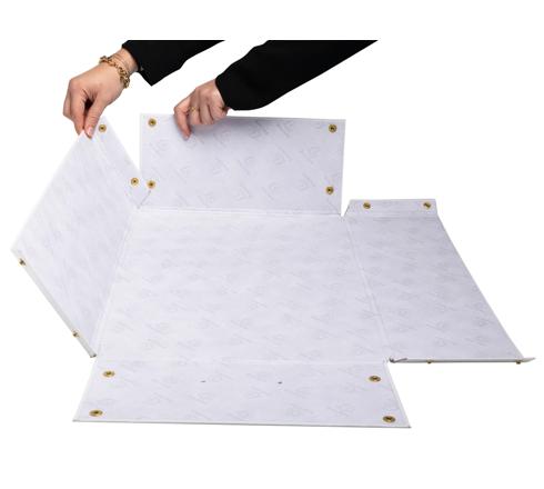 Om ecologische redenen worden de dozen vlak geleverd. Ze zijn eenvoudig te monteren dankzij de drukknopen.