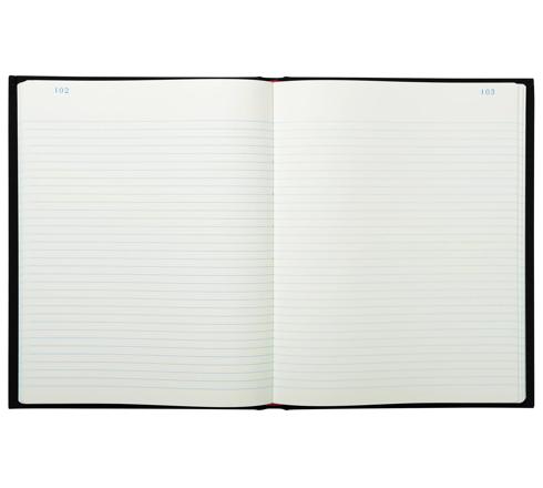 In het standaard register worden alle soorten van handelingen genoteerd. De pagina's zijn genummerd om schrappingen of vervalsingen te voorkomen. De harde kaft is overtrokken met zwart linnen doek en is hierdoor extra stevig en duurzaam. Zeer dik boek om het dagverslag of occasionele gebeurtenissen te noteren.