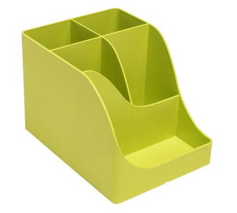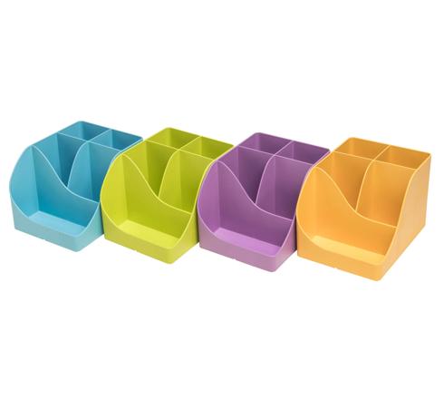 Een pennenhouder met grote opslagcapaciteit dankzij de 5 vakken van verschillende hoogte: 4 hoge vakken voor het opbergen van grote benodigdheden zoals schaar en pennen, en 1 lager vak voor het opbergen van kleine spullen zoals paperclips, duimspijkers, USB-sticks of zelfs een smartphone.