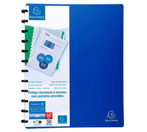 SHOWALBUM MET RINGEN EN UITNEEMBARE TASSEN - HARDE PP - 30 TASSEN - 60 ZICHTEN - A4 - BLAUW